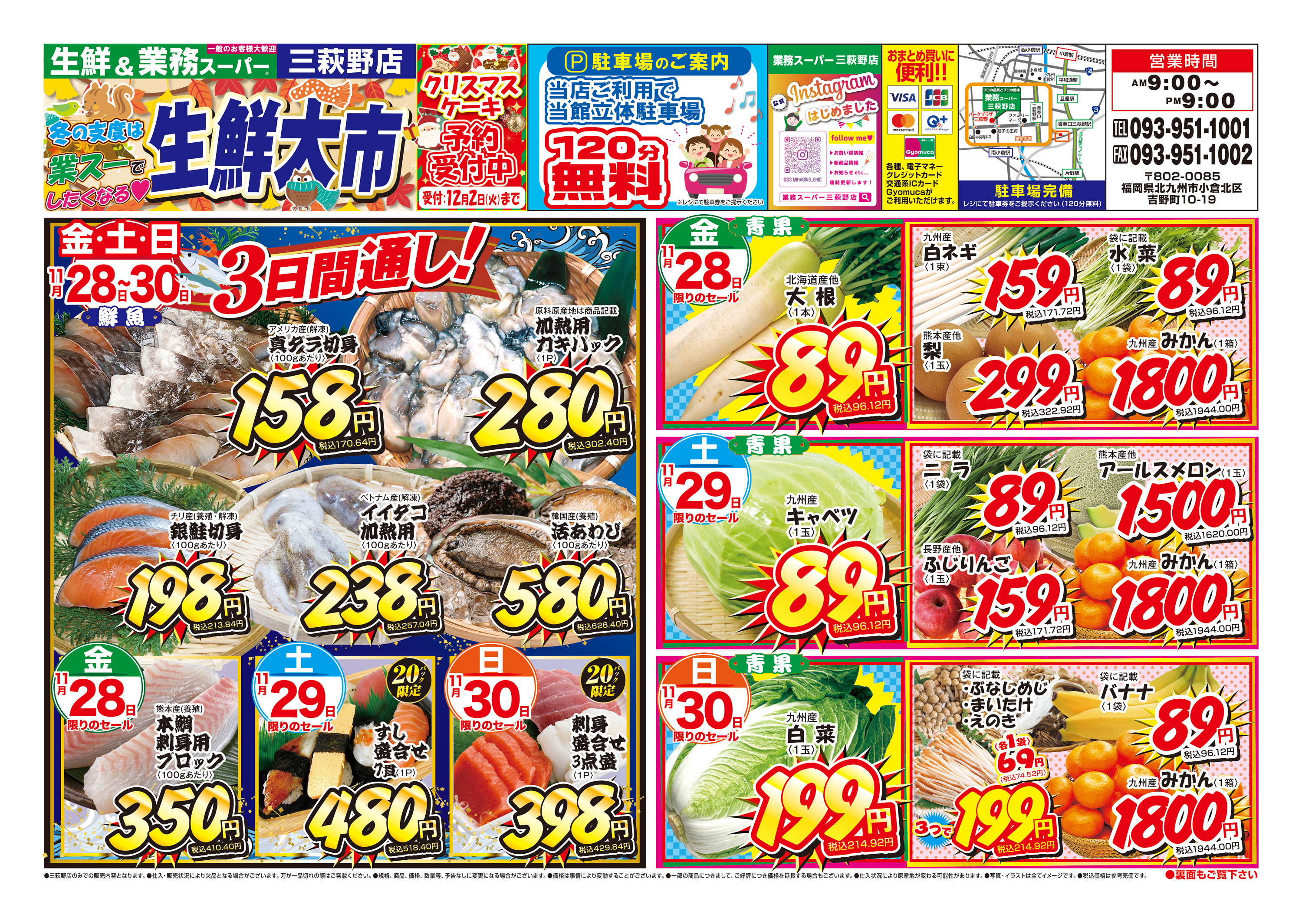 | 取扱い | 青果・精肉・鮮魚・惣菜・酒 |