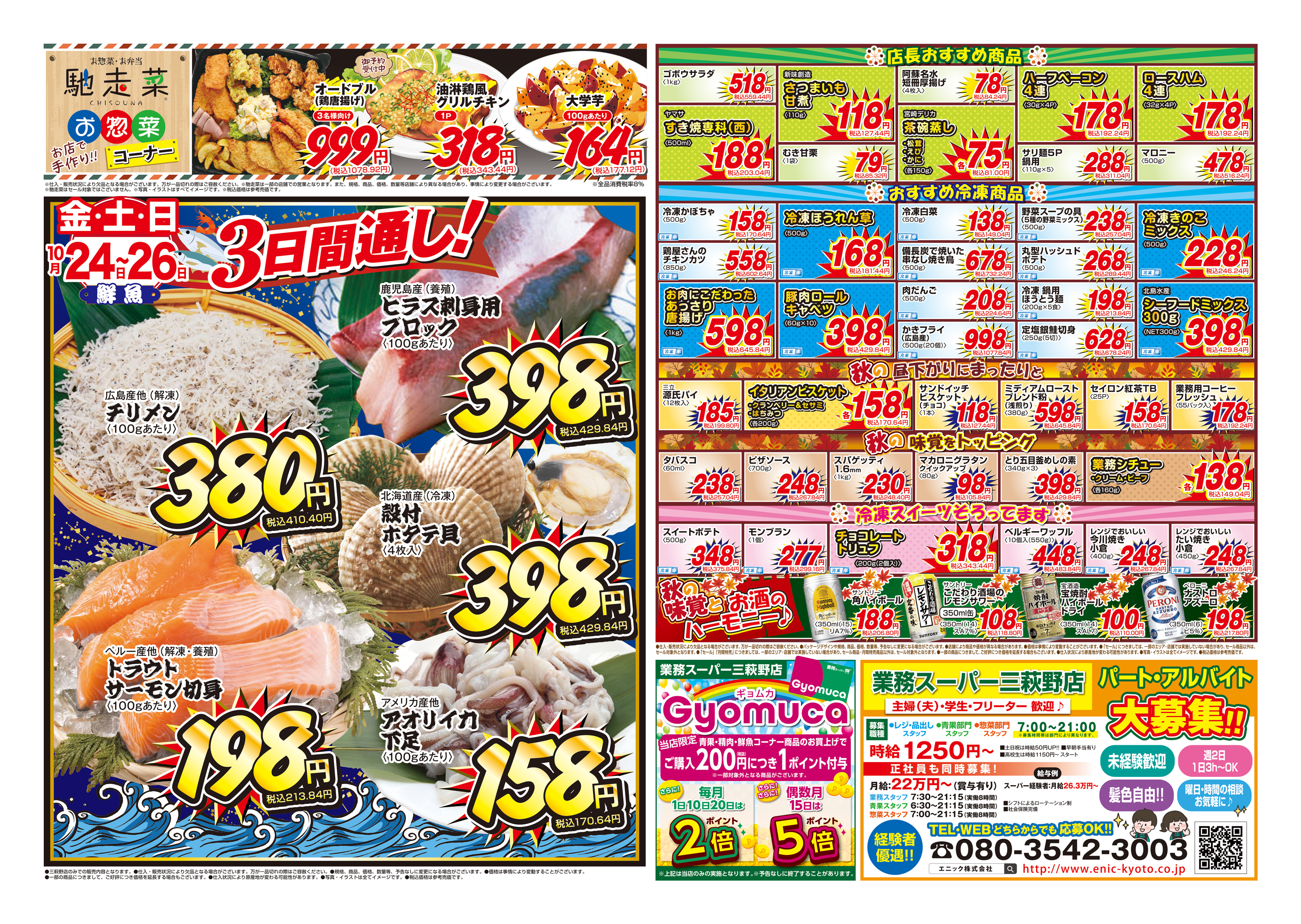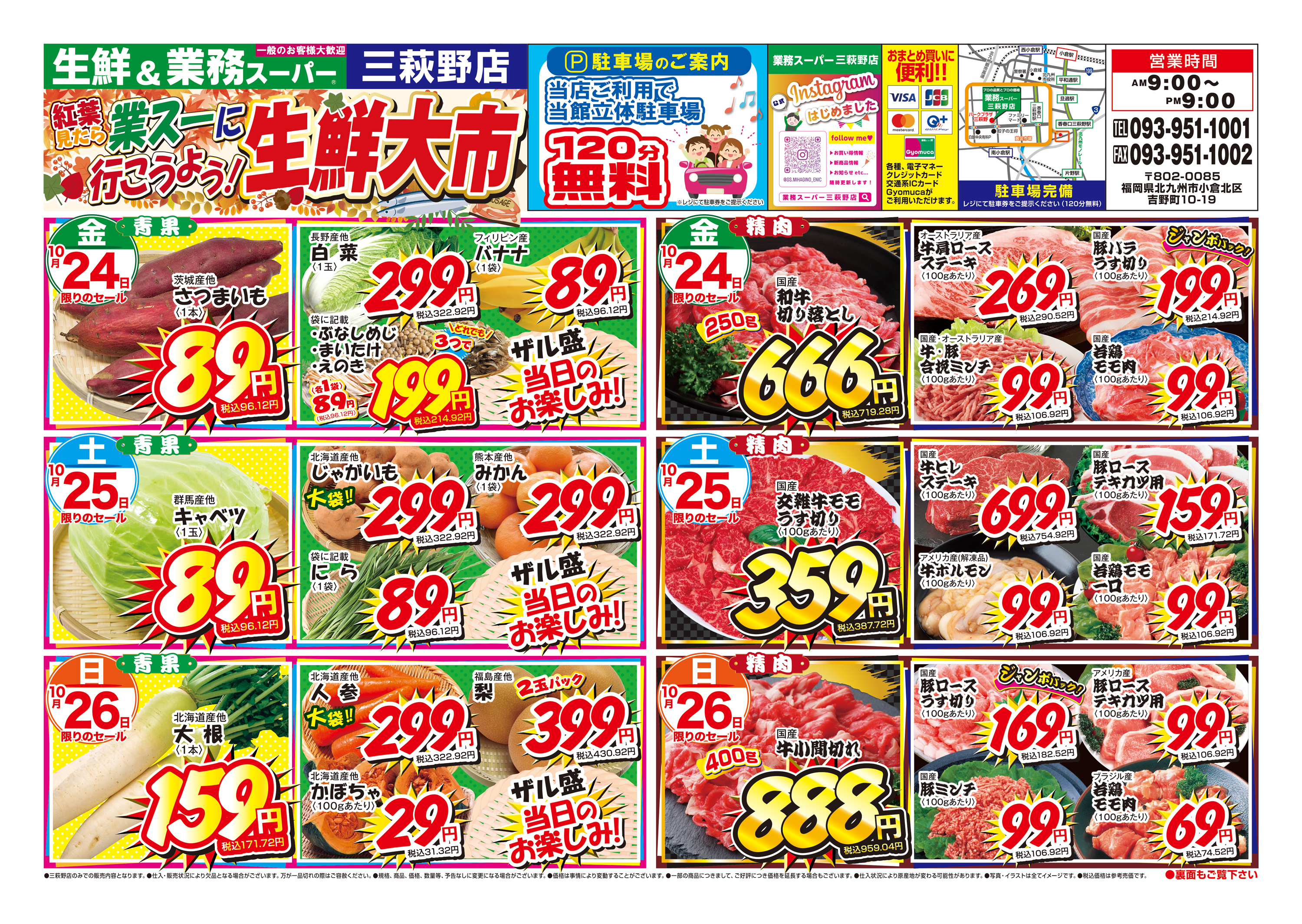 取扱い | 青果・精肉・鮮魚・惣菜・酒 |